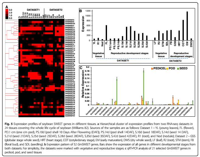 Patil G. ?et al. Soybean (Glycine max) SWEET gene family: insights through comparative genomics, transcriptome profiling and whole genome re-sequence analysis. BMC Genomics. 2015