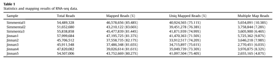 表1.RNA測序數(shù)據(jù)和比對結果統(tǒng)計