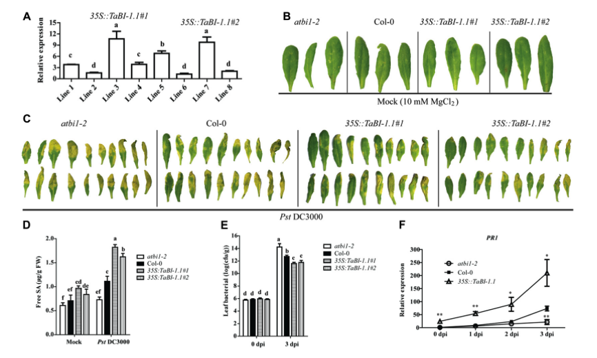 2.TaBI-1.1的表達增強了擬南芥對Pst DC3000感染的抗性