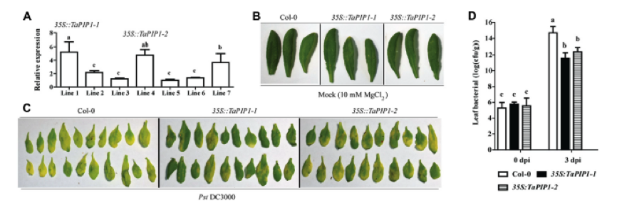 7.TaPIP1增加了擬南芥對PstDC3000感染的抗性