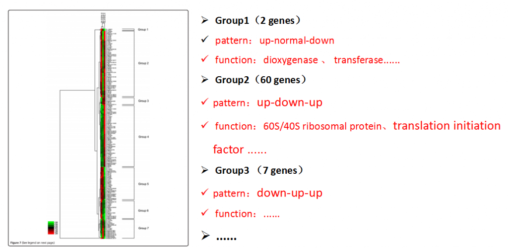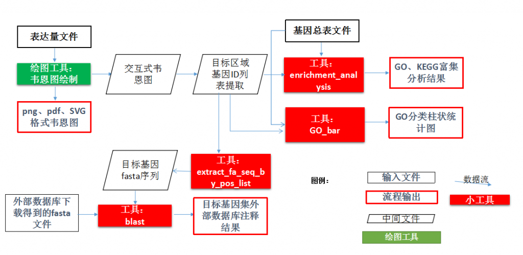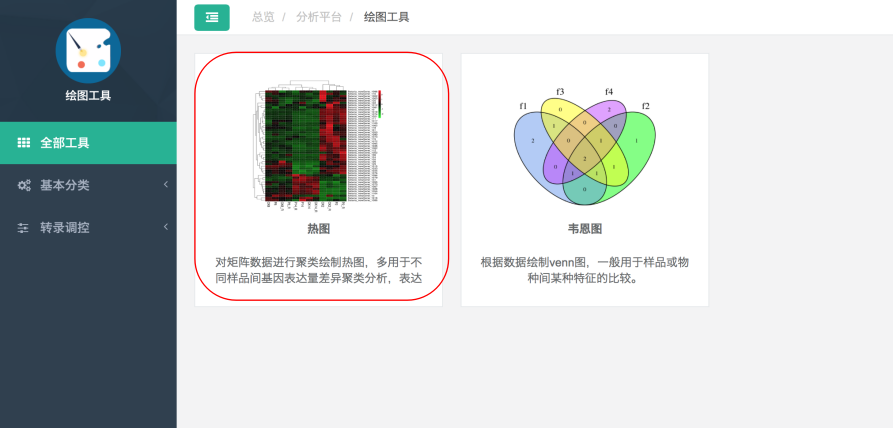 圖片與列表交互功能可實現(xiàn)對聚類熱圖中各個聚類模塊內(nèi)基因ID及其表達量信息的提取,利用該交互功能得到的信息,結(jié)合云平臺上表達模式分析工具、基因功能分析工具及文件操作工具,可深入挖掘聚類熱圖上不同聚類模塊內(nèi)基因集合的表達模式與功能信息。
